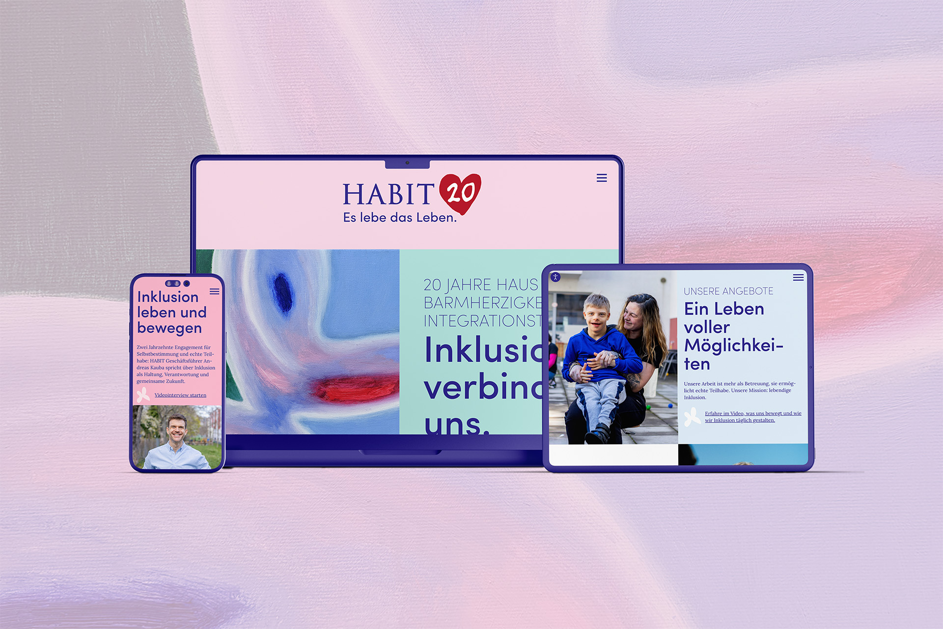 Umsetzung einer Website anlässlich des 20-jährigen Jubiläums von HABIT – Haus der Barmherzigkeit Inklusionsteam nach einem Design von William Knaack.